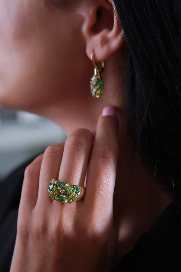 Украшения с перидотом из коллекции BRITZO отлично сочетаются с нейтральными и светлыми оттенками в одежде. Отличный выбор для тех, кто хочет добавить легкости и свежести в повседневный образ.
