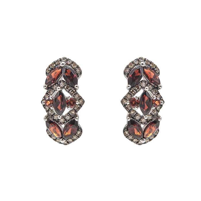 Эти элегантные серьги выполнены из 585 пробы золота и украшены блестящими бриллиантами и яркими гранатами. Идеальный выбор для особых случаев и повседневной носки. Произведены в России с использованием лучших материалов.