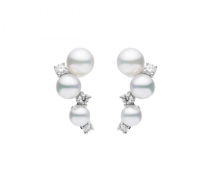 Белый жемчуг, бриллианты круглой огранки